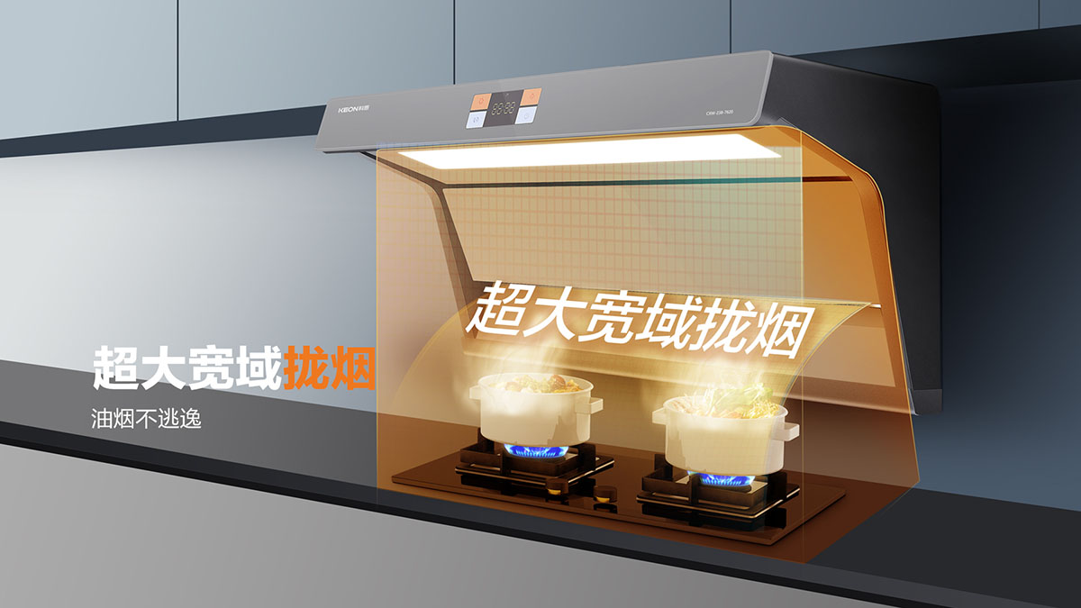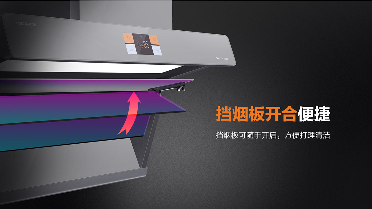 上下雙吸,下強(qiáng)吸上快攏,油煙0逃逸
