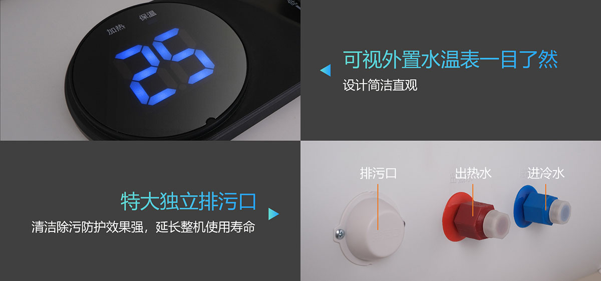 可視外置水溫表一目了然,設計簡潔直觀