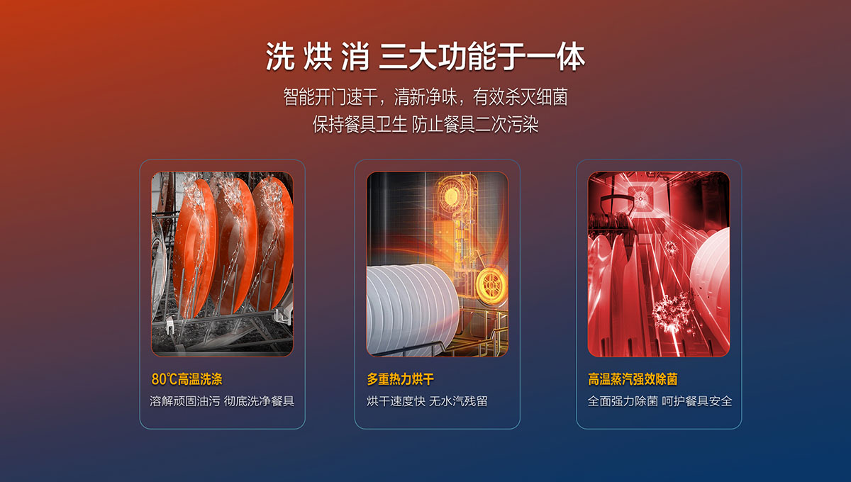智能消毒,一鍵開啟,快捷高效殺滅細菌,保持餐具衛生