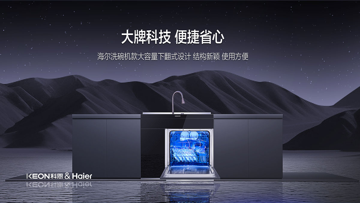 海爾洗碗機大容量下翻式設計,結構新穎,使用方便