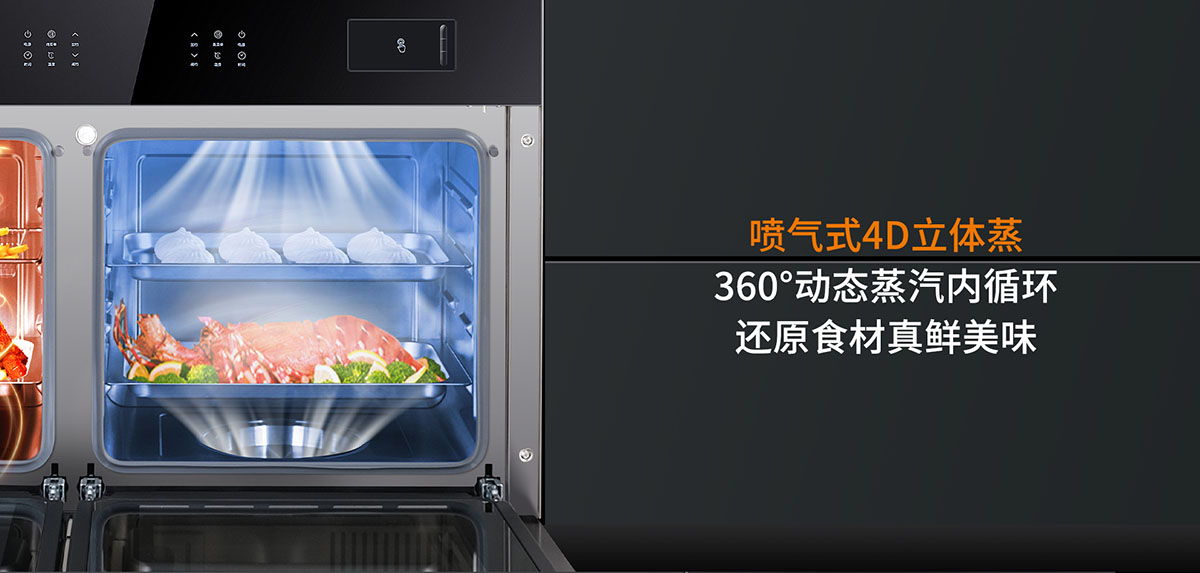 噴氣式4D立體蒸,360°動態蒸汽內循環,還原食材真鮮美味