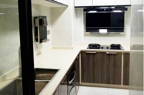 科恩廣東經(jīng)銷商提供的煙機、燃氣灶和不銹鋼水槽廚房實景